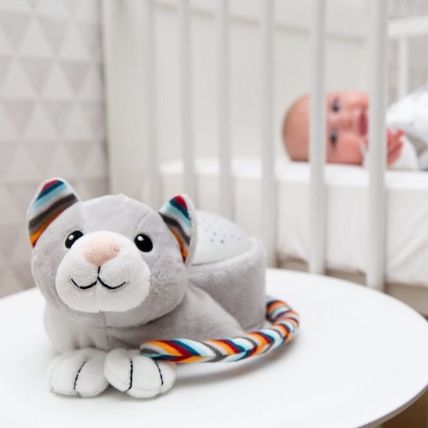 Zasypianie w towarzystwie wesołego przyjacielabędzie dla malucha bardzo przyjemne. Światełka będą delikatnie rozświetlać pokój tworząc gwiaździste niebo. By stworzyć jeszcze lepszą atmosferę do zasypiania pięknej projekcji może towarzyszyć przyjemna melodia, dźwięk pulsu oraz odgłosy natury. Dodatkowo projektor posiada czujnik płaczu - kiedy maluch zacznie płakać, urządzenie automatycznie się aktywuje. Posiada również funkcję automatycznego wyłączenia się po 30 minutach, a muzyka po 15 minutach.