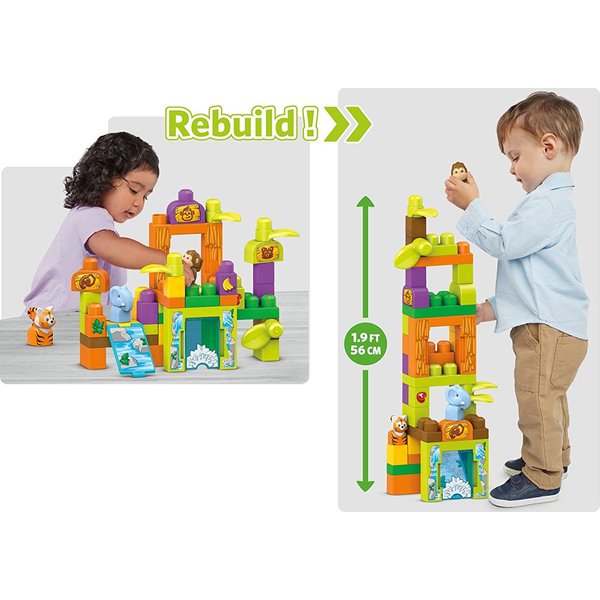 Zestaw Przygodowe ZOO pozwoli za zbudowanie naszemu maluchowi przepięknej dżungli w której mieszkają dzikie zwierzęta, jest tutaj małpka, słonik a nawet tygrys.