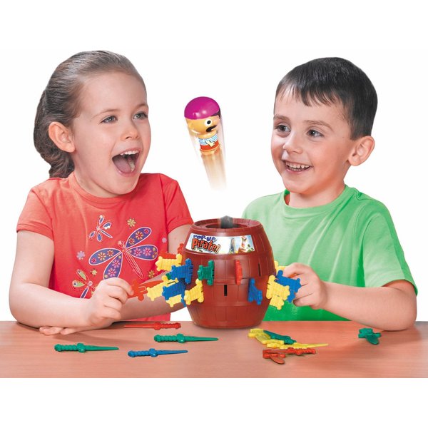 Wkręćcie pirata do beczki i kolejno wsuwajcie kolorowe miecze. Czyj miecz jako pierwszy sprawi, że pirat wyskoczy z beczki?
