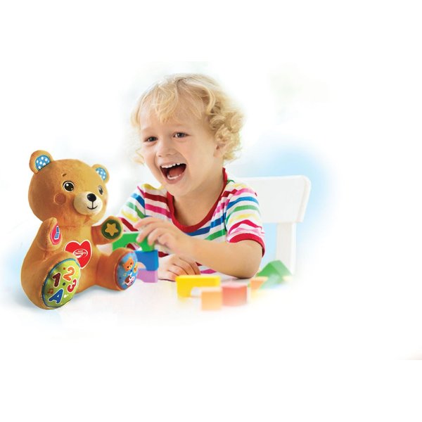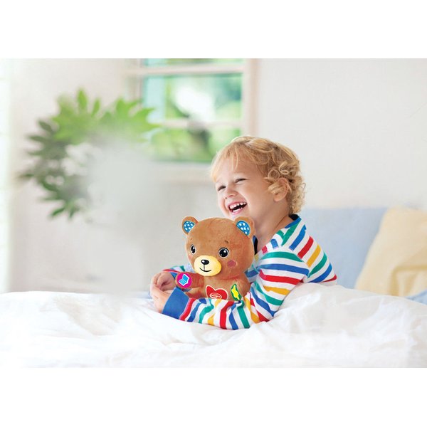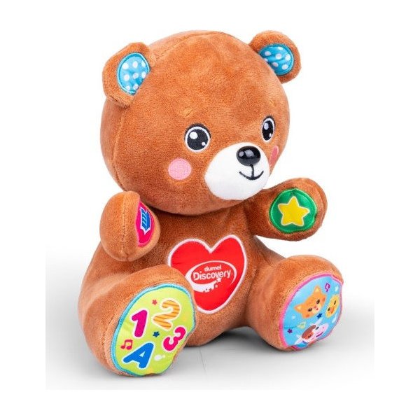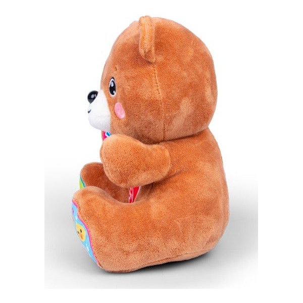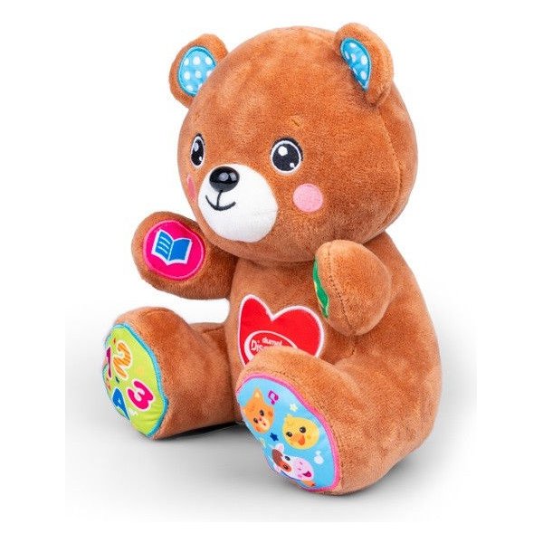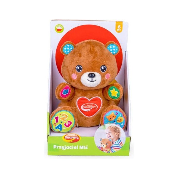 Przyjacielski miś od Dumel, który z chęcią potowarzyszy maluszkowi w zdobywaniu świata! Wyposażony został w wiele piosenek i wierszyków, które w gorszych chwilach rozweselą maluszka i sprawią, że na jego buźce pojawi się uśmiech. Pomocne one będą również podczas wieczornego usypiania, pozwalając dziecku wyciszyć się i utulić go do snu. Jednak to nie wszystko z czym misiu do nas przychodzi. Ukrytych ma wiele niespodzianek, których odkrywanie przyniesie wiele radości. Wszystkie ciekawostki odkryjemy za pomocą przycisków na łapkach.Maluszek będzie mógł razem z nim uczyć się literek i cyferek oraz poznawać wiele wesołych zwrotów.
