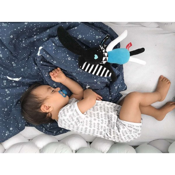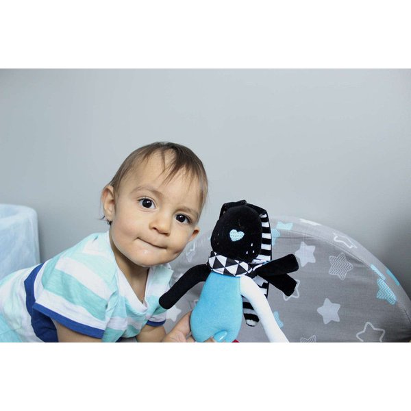 Urocza przytulanka od Mom's Care w postaci wesołego króliczka, który szybko stanie się ulubioną przytulanką maluszka. Spełnia nie tylko rolę misia, ale również będzie delikatnie stymulowała zmysły tak, aby umożliwić niemowlakom rozwijanie umiejętności już od urodzenia. Posiada kontrastowe barwy, które noworodek widzi najlepiej. Wykonana została z materiałów wysokiej jakości, które nie powodują podrażnień, a różna struktura pozwoli stymulować zmysł dotyku. Króliczek posiada również długie nogi i rączki, które pozwolą doskonalić chwyt.