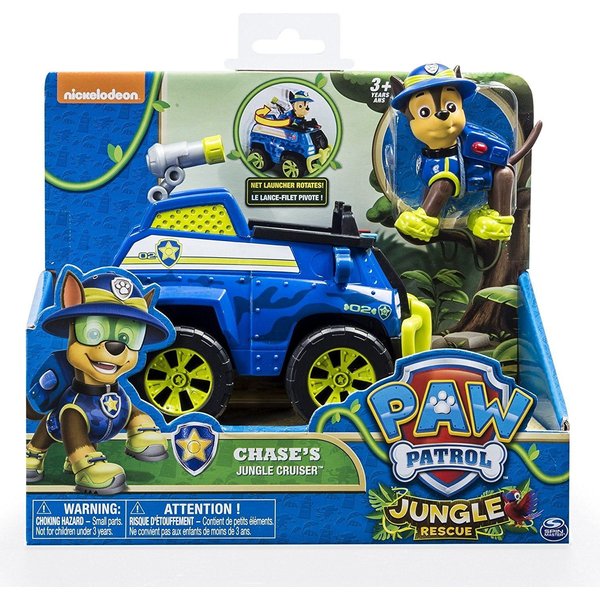 Posadź Chase'a za sterami wozu policyjnego i ruszaj do akcji w dżungli! Obracaj działkiem i namierzaj nieprzyjacielskie cele by misja zakończyła się pomyślnie. Figurka posiada ruchome kończyny, co urozmaici zabawę.