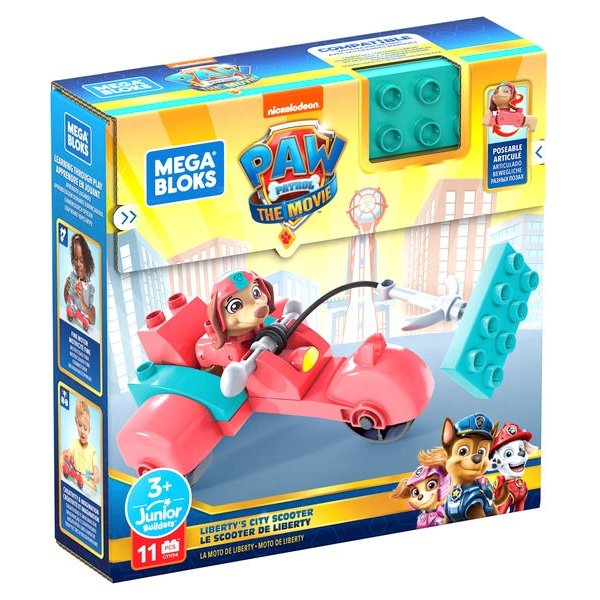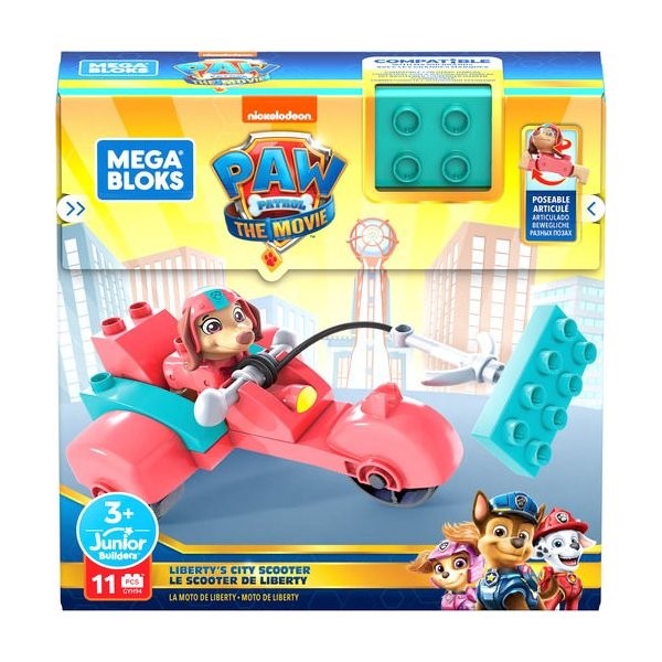Jeśli Twoje dziecko jest fanem animacji Psi Patrol, to z pewnością ucieszy się z prezentu inspirowanego ulubionymi bohaterami. Podaruj mu zestaw klocków Psi Patrol skuter Liberty marki Mega Bloks . Ten łatwy w budowie zestaw pomoże doskonalić umiejętności konstruowania pojazdów z prostych elementów. Dzięki temu maluch może rozwijać swoją wyobraźnię, zręczność i umiejętność rozwiązywania problemów. Dziecko ma za zadanie zbudować skuter miejski z hakiem dla pieska Liberty.