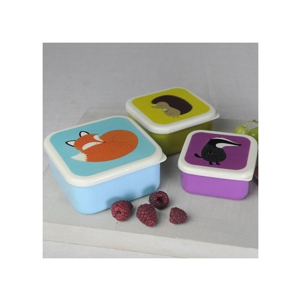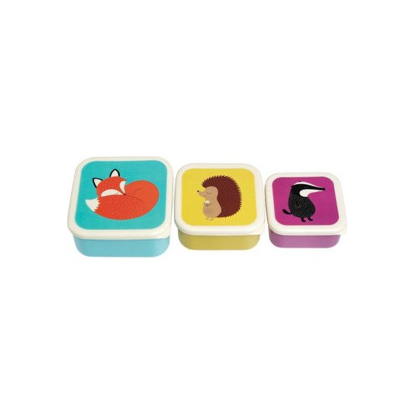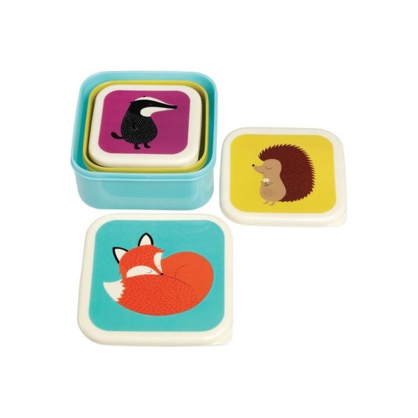 Zestaw kolorowych pudełek od Rex London, które pozwolą przechować przekąski do przedszkola czy na wyjazd. Każdy z nich posiada inne wymiary, a po opróżnieniu można spakować jeden do drugiego, co pozwoli zaoszczędzić miejsce w szafkach. Pudełko bez problemu można umyć w zmywarce, natomiast wieczko ze wzorem należy myć ręcznie. Nie należy używać ich w kuchence mikrofalowej.
