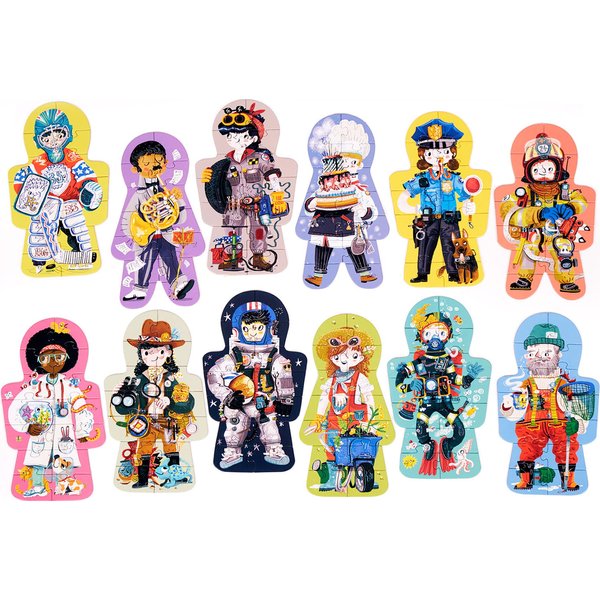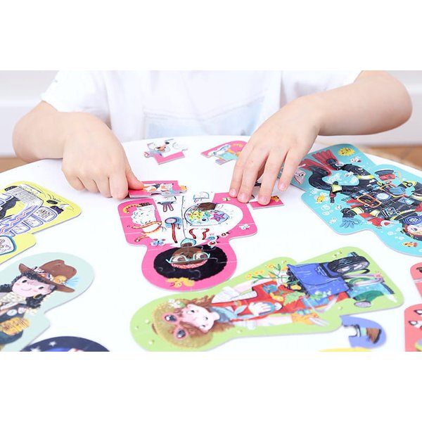 Pięknie ilustrowane puzzle od Czuczu, które wprowadzą malucha w tajniki różnych zawodów! Zestaw składa się z 12 układanek, a każda z nich posiada 14 elementów, co daje nam łącznie 168 części. Każda z planszy przedstawia innego bohatera. Każda z ilustracji jest bogata w różne elementy, które postać potrzebuje do wykonywania swojego zawodu. To pozwoli maluchowi przyswoić podstawowe informacje. Wykonane z solidnego materiału, gwarantują świetną zabawę!