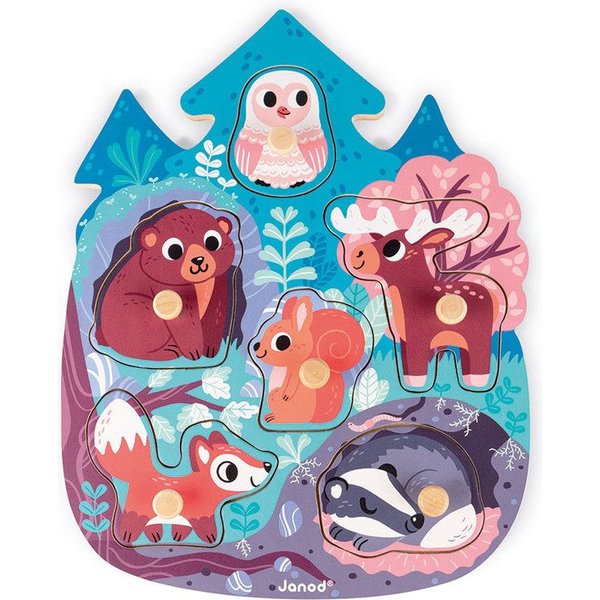 Drewniane puzzle będą idealne jako pierwsza układanka dla dziecka. Zestaw składa się z 7 drewnianych elementów: 6 drewnianych zwierząt (sówka, niedźwiadek, lisek, wiewiórka, jelonek i borsuk) oraz 1 drewnianej planszy z wgłębieniami o kształtach tych zwierząt. Układanie puzzli rozwija zdolności manualne dziecka, ćwiczy pamięć, wzrok oraz zręczność. Układanka została zapakowana w ładne pudełko idealne na prezent.
