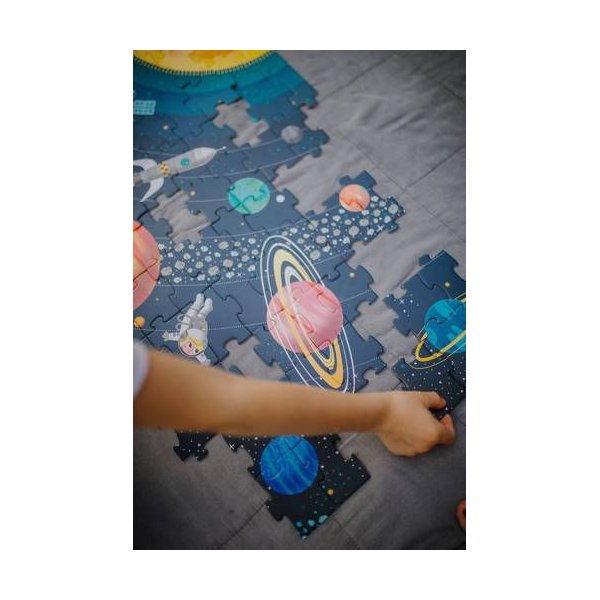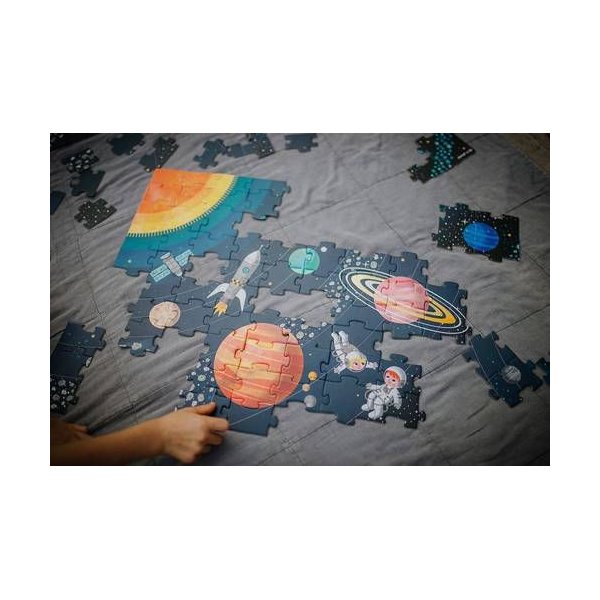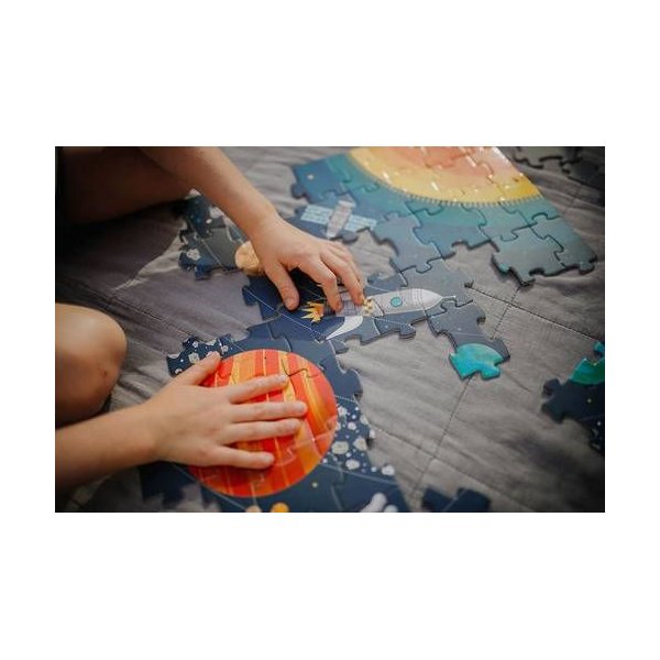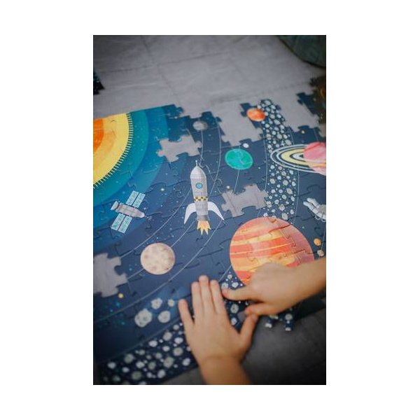 Puzzle edukacyjne marki Janod to idealny produkt dla starszych dzieci, który będzie doskonałym połączeniem nauki i zabawy. Układając puzzle dziecko rozwija swoje zdolności manualne oraz motoryczne, uczy się logicznego myślenia oraz zapamiętywania. Oprócz tego świetnie stymulują rozwój mózgu oraz uczy cierpliwości. Puzzle posiadają idealne kształty, które pozwalają na bezproblemowe łączenie wszystkich części. Zestaw składa się ze 100 elementów, które przestawiają układ słoneczny. Do zestawu dołączona została broszura w języku polskim, która przekazuje różne informacje o obiektach znajdujących się na obrazku.