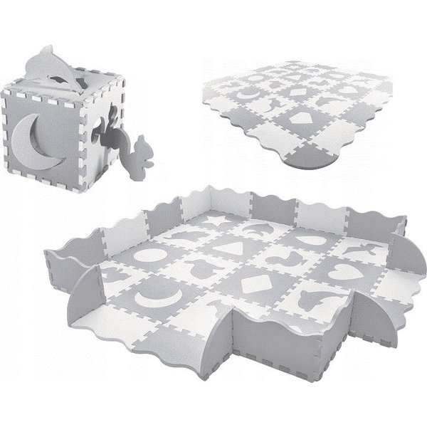 Zestaw puzzli piankowych składający się z 36 elementów, które po złożeniu stworzą dużą przestrzeń do swobodnej zabawy. Jej duże wymiary całkowite (150x150cm) pozwolą maluszkowi spokojnie bawić się, ćwiczyć umiejętności, a przy tym będzie doskonale odizolowany od chłodnej podłogi. Jej neutralne kolory pozwolą doskonale dopasować się do wystroju pokoju dziecięcego. Jest gruba (1cm), a przy tym miękka, co minimalizuje ryzyko urazów podczas upadku. Puzzle w odróżnieniu do dywanów bardzo łatwo się czyści. Bez problemu wytrzemy rozlane picie czy resztki jedzenia. Nie musimy się, więc obawiać o ich czystość.