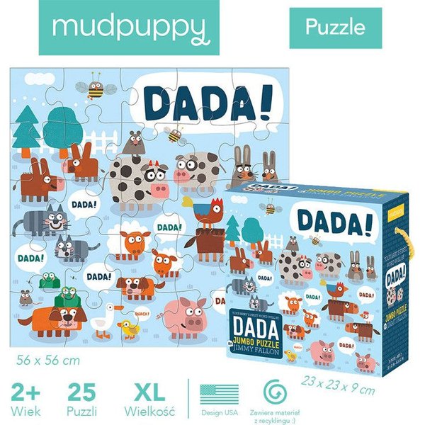 Podłogowe puzzle doskonałe do zabawy i stymulowania dotyku oraz wzroku.Puzzle posiadają 25 kawałków, które po złożeniu przedstawiają uroczy obrazek o wymiarach 56 cm x 56 cm. Całość przedstawia urocze pary - tatę i dziecko - różnych gatunków zwierząt. Układanka została zapakowana w ładne pudełko idealne na prezent.