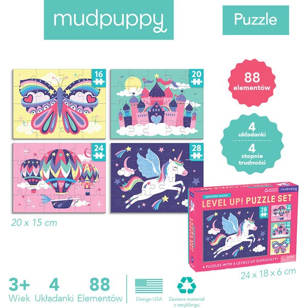 Puzzle progresywne 16, 20, 24 i 28 elementów 3+ Mudpuppy