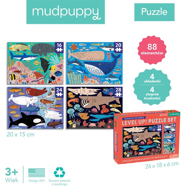 Puzzle progresywne 16, 20, 24 i 28 elementów 3+ Mudpuppy