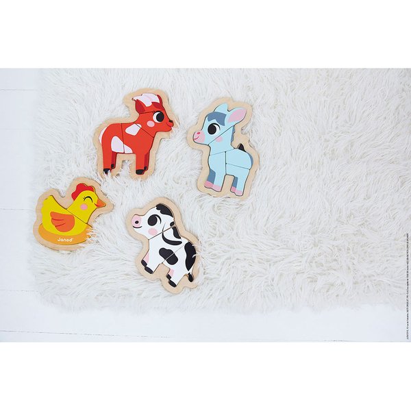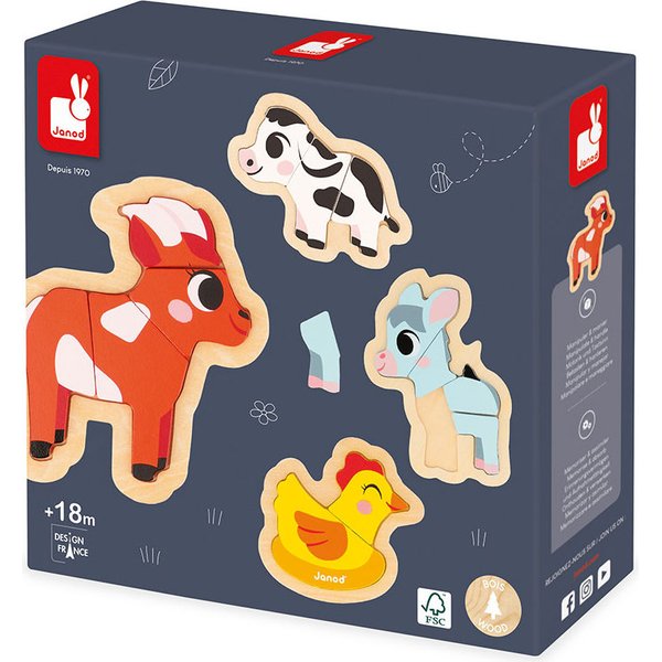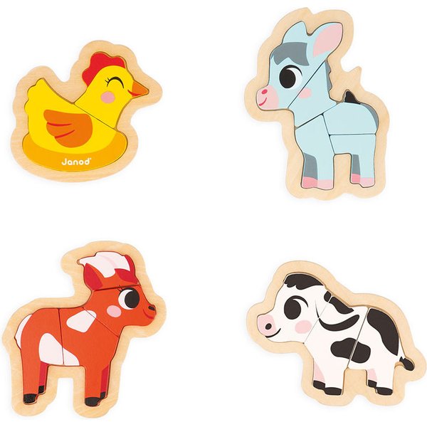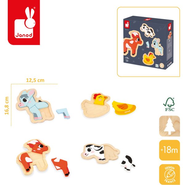 Puzzle progresywne drewniane Farma 4 układanki Janod
