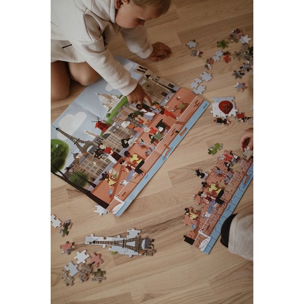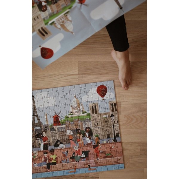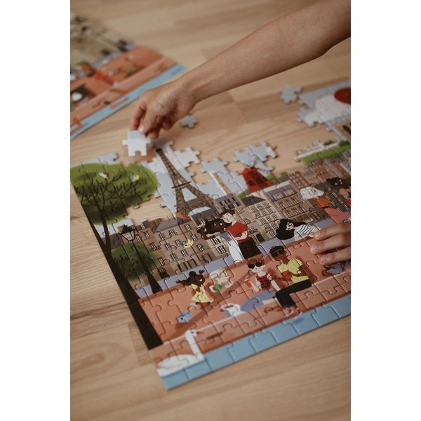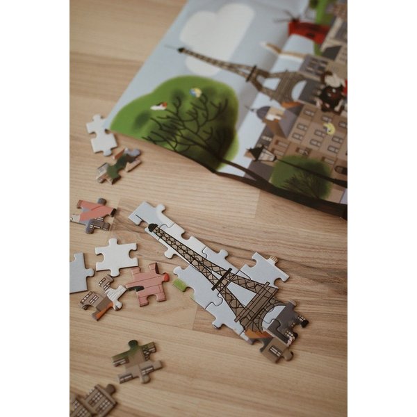 Zabawka ta rozwija dziecięcą wyobraźnię, pamięć i pomaga w ćwiczeniu koncentracji na zadaniu. Kolorowe, kartonowe puzzle prezentują dziecku w obrazkowej wersji najsłynniejsze zabytki stolicy Francji, inspirując do rozmowy o świecie i podróżowaniu. Puzzle są zapakowane w piękną walizkę, idealną na prezent.