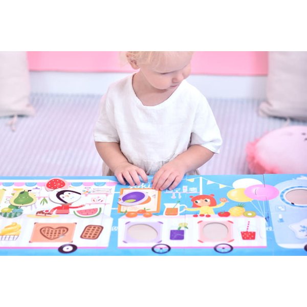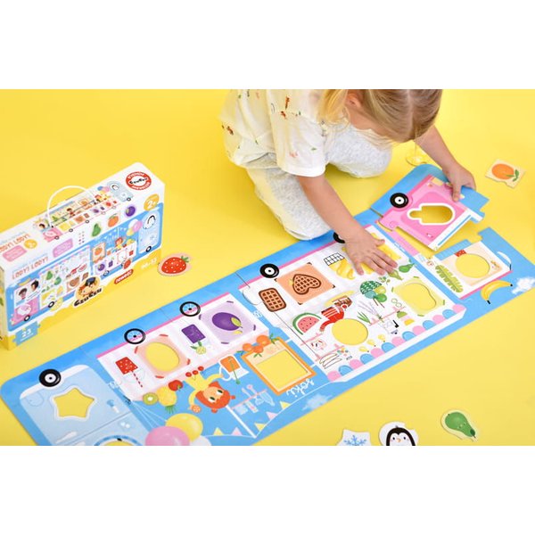 Puzzle panoramiczne od Czuczu, które pokocha każdy mały łasuch! Przedstawiają one kolorowy wóz pełen łakoci! Całość składa się z 23 elementów w tym: 12 tradycyjnych puzzli oraz 11 kształtów do dopasowanie w odpowiednie miejsca. Świetnie sprawdzą się jako pierwsze puzzle dla maluszka. Wykonane zostały z solidnego materiału, co pozwoli nam użytkować je przez dłuższy czas.