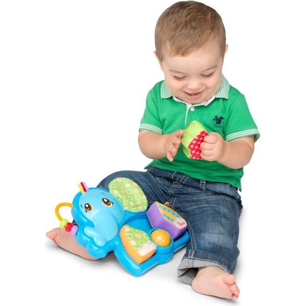 Kolorowe, mięciutkie puzzle z wesołym słonikiem umilą czas maluchowi! W zestawie maluch znajdzie trzy mięciutkie elementy, które może ułożyć na podstawce w kształcie słonika. Jednak to nie wszystko, zabawka kryje jeszcze więcej atrakcji! Grzechocząca kuleczka do potrącania, kolorowe koraliki na uszku słonia do przesuwania oraz różnorodne faktury z pewnością zaciekawią malucha na wiele godzin. Rozwija zdolności manualne oraz umiejętność logicznego myślenia.