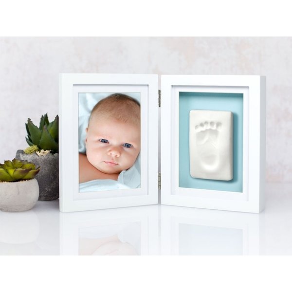 Ramka na zdjęcie i odcisk, która pozwoli zatrzymać czas na dłużej! Wykonana w solidny sposób będzie doskonałą ozdobą dziecięcego pokoju czy salonu. Pozwoli ona uchwycić chwilę w której maluszek był niemowlęciem tak, aby została z nami na zawsze! Doskonale sprawdzi się również jako prezent na dzień babci i dziadka lub baby shower. Posiada ona dwa panele. Jeden na odcisk i jeden na zdjęcie o wymiarach 10x15 cm. Zestaw posiada wszystko co potrzebne do wykonania odcisków. Wystarczy ugnieść masę i rozwałkować na folii spożywczej. Następnie należy przystawić do niej rączkę lub stópkę i wykonać odcisk. Aby stworzyć ładne obramowanie, wykorzystać możemy w tym celu linijkę, która umożliwia wycięcie obramowania. Tak przygotowany produkt należy zostawić do wyschnięcia (1-2 dni). Gdy już odczekamy odpowiedni czas, możemy spokojnie przełożyć odciski do ramki i zamocować przy pomocy dwustronnej taśmy.
