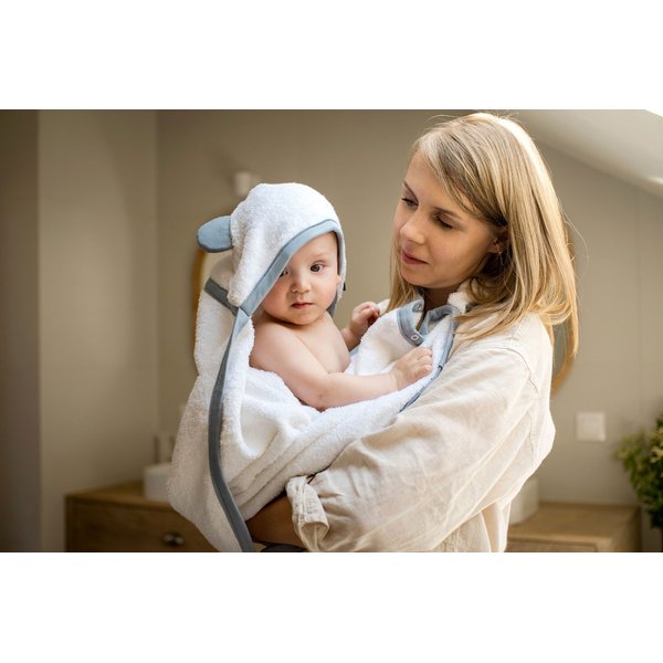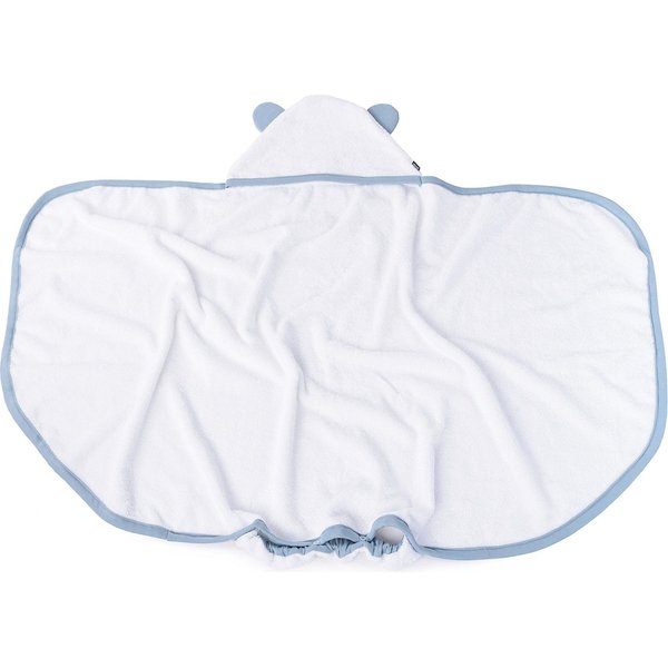 - specjalna gumka, dzięki której można użyć ręcznika jako fartuszka kąpielowego dla dorosłych, kąpiących dziecko - zabezpieczy Twoje ubranie przed chlapaniem malucha! Po wyjęciu z kąpieli możesz bez pobaw przytulić swoją pociechę, jednocześnie ją osuszając,