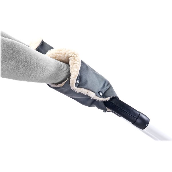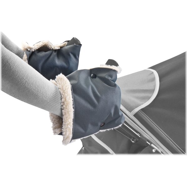 Rękawiczki można zaczepić na łączonej rączce wózka za pomocą napów. Z zewnątrz pokryte są nieprzemakalnym materiałem, a środek wyłożone są ciepłym "barankiem", który będzie chronił dłonie przed zimnem.