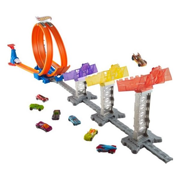Rozgrywaj emocjonujące zawody z twoimi ulubionymi samochodzikami Hot Wheels! Tor został wyposażony w dwie wyrzutnie, dzięki czemu możesz zaprosić do wspólnej zabawy swojego przyjaciela.