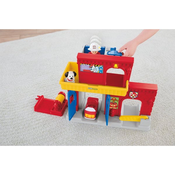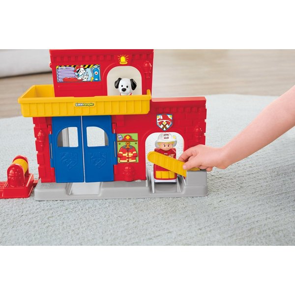 Alarm! Pali się! Eddie z Little People musi działać błyskawicznie. Mały strażak może poprowadzić go przez drzwi, następnie pomóc wejść po drabinie i w końcu obrócić uchwyt, aby Eddie wskoczył do oczekującego wozu strażackiego. Będzie pędził co sił, aby jak najszybciej wkroczyć do akcji! Po ugaszeniu pożaru wystarczy podnieść bramkę, aby wpuścić Eddiego i wóz z powrotem do remizy. Ten wspaniały zestaw rozbudzi chęć kreatywnej zabawy, podczas której malec będzie sobie wyobrażał, jak to jest być prawdziwym strażakiem!
