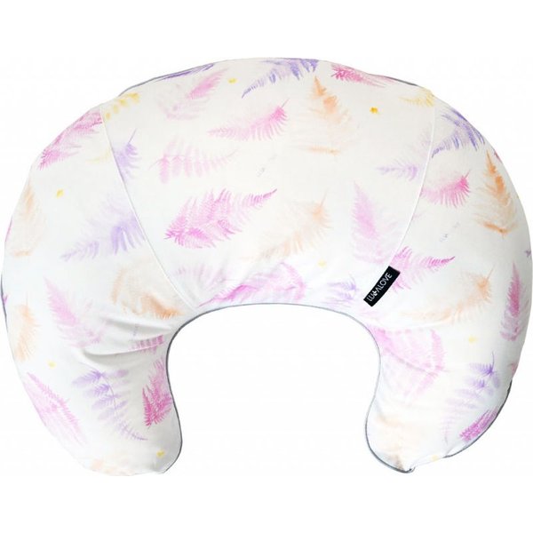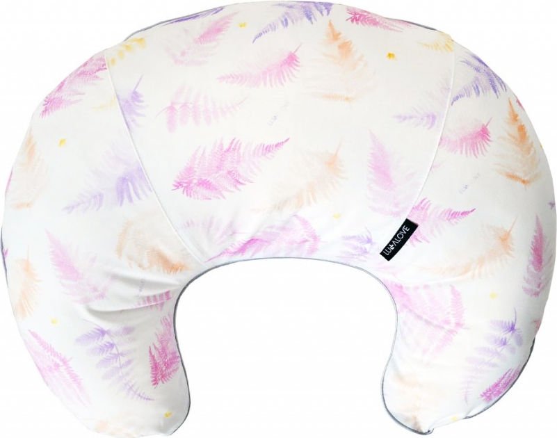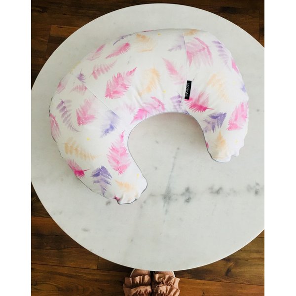 W zestawie 1 poduszka rogal z poszewką w kolorze RÓŻOWE PAPROCIE.