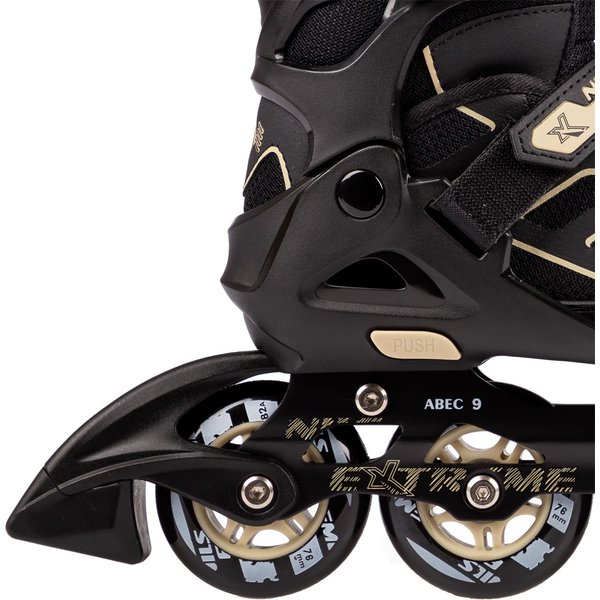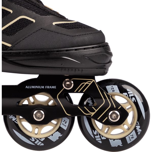 Model stworzony został co prawda do jazdy rekreacyjnej, ale zastosowanie kółek o optymalnej twardości oraz precyzyjnych łożysk ABEC-9 sprawia, że możesz w nich jeździć naprawdę szybko. Regulowana konstrukcja pozwala Ci na wybór jednego z czterech rozmiarów, co jest idealnym rozwiązaniem dla dzieci, których stopy wciąż rosną lub dla osób dorosłych, które mają problem z doborem rozmiaru obuwia na co dzień. But posiada półmiękką konstrukcję, a dyskretny system wentylacji pozwoli Ci zachować suchość i świeżość. Zapięcie składa się z sznurowania, paska na rzep oraz klamry, dzięki czemu dopasowanie będzie doskonałe. Odporny na ścieranie hamulec z tworzywa PP pozwoli Ci bezpiecznie zatrzymać się w każdym momencie.