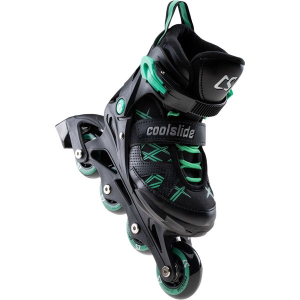 Łożyska ABEC-7 wykonane ze stali węglowej zapewniają redukcję odczuwania nierówności podłoża. Zapięcie składające się z 3 elementów: sznurowania, paska na rzep i klamry, zapewnia precyzyjne i bezpieczne dopasowanie.