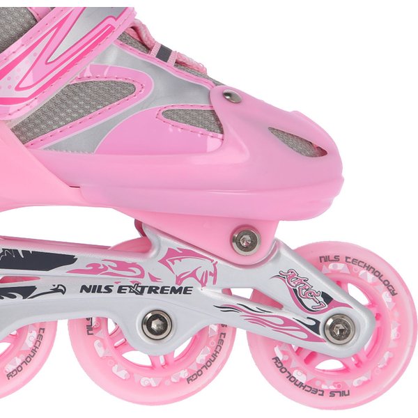 Konstrukcja rolek pozwala na łatwą zmianę płozy i ich zamianę w wysokiej klasy łyżwy hokejowe. Łyżwy zapewniają płynną jazdę za sprawą płozy ze stali nierdzewnej oraz kilkuelementowego systemu zapięcia, na który składa się sznurowanie, pasek na rzep i klamra. Ten ostatni odpowiada za precyzyjne dopasowanie i stabilizację stopy w bucie. Funkcjonalność modelu NH18366 A sprawia, że rolko-łyżwy sprawdzą się zarówno użytkownikom początkującym, jak i bardziej zaawansowanym.