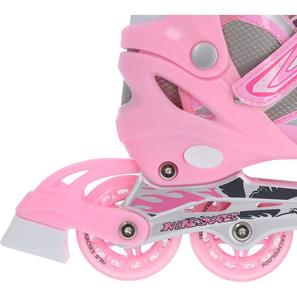 Równie dużą radość z jazdy zapewniają rolki wyposażone w aluminiową płozę oraz bezpieczny hamulec. Kółka dobrane odpowiednio do rozmiaru obuwia mają odpowiednią twardość, a dzięki zastosowaniu łożysk ABEC-7 pozwalają na szybką jazdę podczas której nie odczujesz nierówności podłoża.