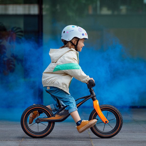 Dzięki regulacji siodełka i kierownicy rowerek można dostosować do wzrostu dziecka co pozwoli na jego dłuższe użytkowanie. Dla zwiększenia bezpieczeństwa rączki zostały wyposażone w antypoślizgowe nakładki, które zapewnią lepszy i pewniejszy chwyt, a kierownica posiada blokadę skrętu, która ograniczy ryzyko kontuzji. Całą jazdę uprzyjemnią pompowane 12 calowe koła, które sprawdzą się na każdej powierzchni.