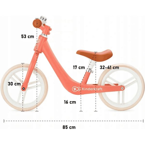 Charakteryzuje się nisko ułożoną ramą, co ułatwia dziecku samodzielne wsiadanie na rowerek. Lekka konstrukcja w połączeniu z gumowymi, 12 calowymi kołami pozwoli na komfortowe manewrowanie nim. Rowerek będzie idealnym wstępem do nauki na dużym dwukołowym rowerze w przyszłości. Brak pedałów oraz dwa duże koła pomogą maluchowi nabrać pewności podczas jazdy, wyćwiczyć równowagę oraz stabilizację ciała niezbędną podczas jazdy na dużym rowerze. Regulowane siodełko (33-42cm) pozwoli na dostosowanie jego wysokości do malucha.