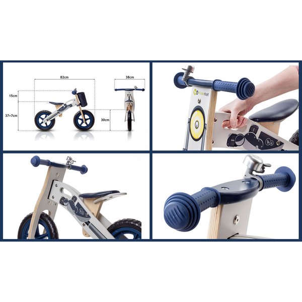 Rowerek wykonany jest z drewna przez co jest lekki i bez problemu sprawdzi się dla małych dzieci rozpoczynających naukę jazdy na dwóch kółkach. Rowerek będzie idealnym wstępem do nauki na dużym dwukołowym rowerze w przyszłości. Brak pedałów oraz dwa duże koła pomogą maluchowi nabrać pewności podczas jazdy, wyćwiczyć równowagę oraz stabilizację ciała niezbędną podczas jazdy na dużym rowerze.