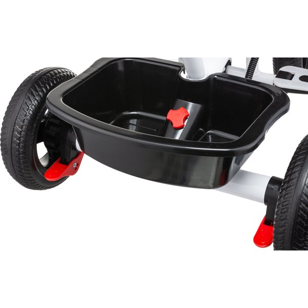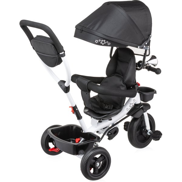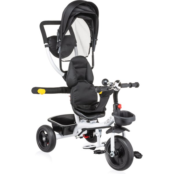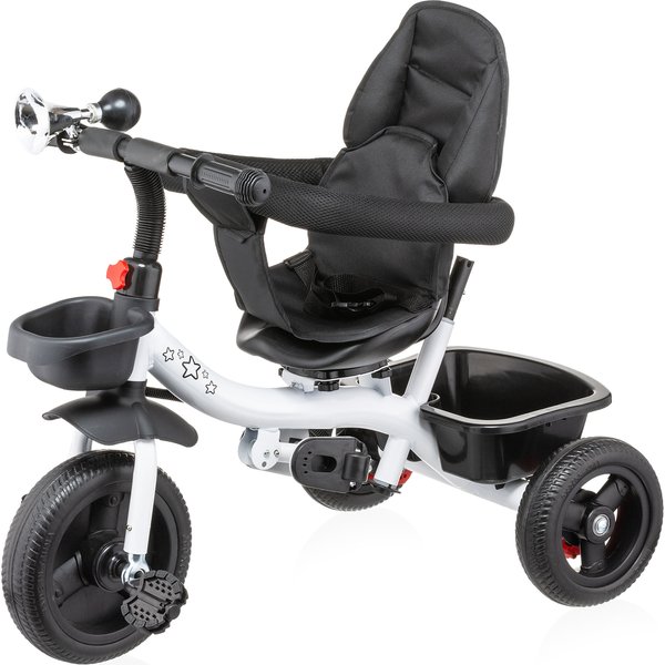 Będzie stanowił bezpieczny i wygodny środek transportu, który będzie mógł zastąpić tradycyjną spacerówkę. Obrotowe siedzisko pozwoli na ustawienie go przodem lub tyłem do kierunku jazdy. Pozwoli to, więc dostosować go do indywidualnych preferencji maluszka. Wygodna rączka do prowadzenia i sterowania rowerkiem pozwoli rodzicom na bezproblemowe operowanie kierunkiem i prędkością jazdy. Dwa pojemniki oraz odpinana saszetka na drobiazgi pozwolą zabrać ze sobą zabawki i inne rzeczy, które przydadzą się podczas spaceru. Bezpieczeństwo zapewnią odpinana barierka i pasy, które zapobiegną one przed wypadnięciem dziecka z rowerka. Komfortowe siedzisko zapewnią wygodę bez względu na jak długi spacer się wybierzemy, a składany daszek uchroni maluszka przed promieniowaniem w słoneczne dni.