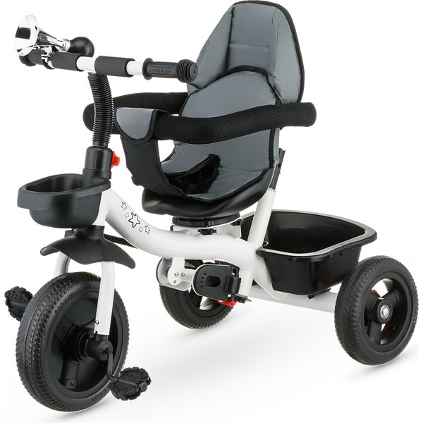 Będzie stanowił bezpieczny i wygodny środek transportu, który będzie mógł zastąpić tradycyjną spacerówkę. Obrotowe siedzisko pozwoli na ustawienie go przodem lub tyłem do kierunku jazdy. Pozwoli to, więc dostosować go do indywidualnych preferencji maluszka. Wygodna rączka do prowadzenia i sterowania rowerkiem pozwoli rodzicom na bezproblemowe operowanie kierunkiem i prędkością jazdy. Dwa pojemniki oraz odpinana saszetka na drobiazgi pozwolą zabrać ze sobą zabawki i inne rzeczy, które przydadzą się podczas spaceru. Bezpieczeństwo zapewnią odpinana barierka i pasy, które zapobiegną one przed wypadnięciem dziecka z rowerka. Komfortowe siedzisko zapewnią wygodę bez względu na jak długi spacer się wybierzemy, a składany daszek uchroni maluszka przed promieniowaniem w słoneczne dni.