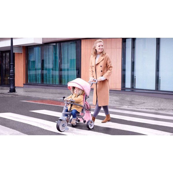 Rodzic może kierować rowerkiem za pomocą rączki, która umieszczona jest z tyłu rowerka. Ciche, piankowe koła zapewniają komfort jazdy na każdym podłożu, a antypoślizgowe pedały będą uniemożliwiać zsuwanie się nóżek dziecka z nich. Dodatkowo rowerek Jazz posiada torbę, w której mama może schować tam swoje drobiazgi podczas spaceru z maluszkiem oraz niewielkie zabawki dziecka.