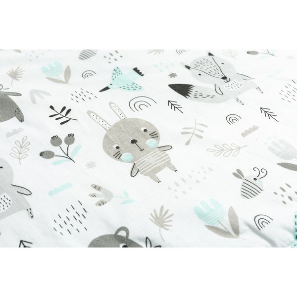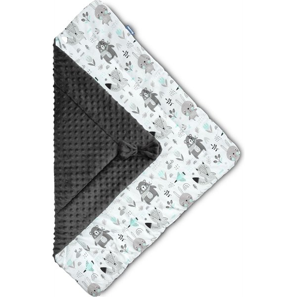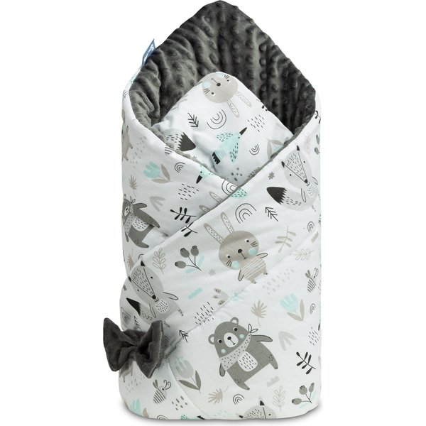 Wykonany z najwyższej jakości bawełny oraz tkaniny typu minky produkt zagwarantuje maluszkowi pełen komfort i wygodę. Jest on wypełniony puszystą włókniną, która utrzyma temperaturę dziecka, a jednocześnie nie przegrzeje. Rożek znajdzie swoje zastosowanie jako kołderka czy śpiworek w wózeczku, a rozłożony jako podkład czy mata. Zapinany jest na rzep. Dwustronny rożek posiada wesoły nadruk i stanie się ozdobą dziecięcego pokoiku.