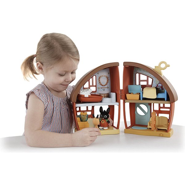 Domek Króliks kryje wiele niespodzianek. W środku jest sofa, kuchnia, łóżko, wanna, ubikacja, a także skrzynia z drobiazgami. Bing chętnie spędza tutaj czas razem z przemiłą Flop.