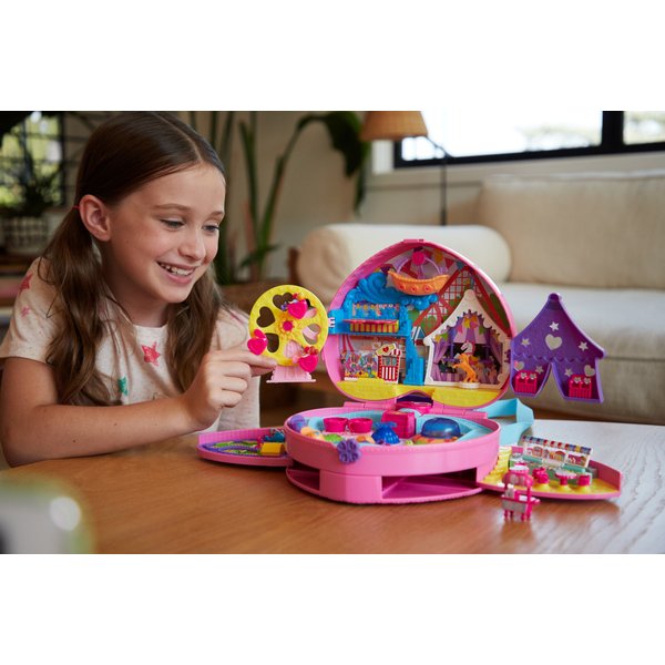 Rozkładany Plecak Park Rozrywki Polly Pocket to przenośne centrum zabawy, które spodoba się każdej miłośniczce przygód w miniaturowym stylu Polly.