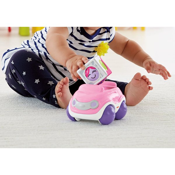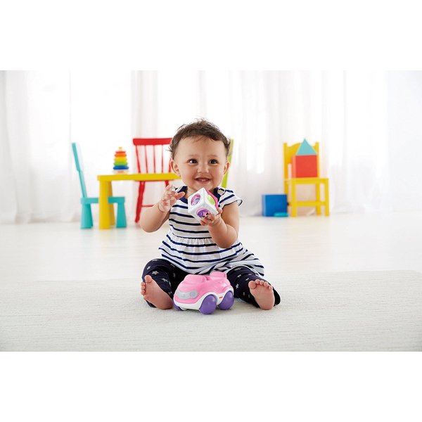 Klocek można wyjąć z pojazdu i bawić się nim osobno. Posiada ruchome elementy, w środku obraca się kulka ujawniając ciekawe minki. Maluch przy każdej zabawie będzie odkrywać nowe funkcję i kolory.
