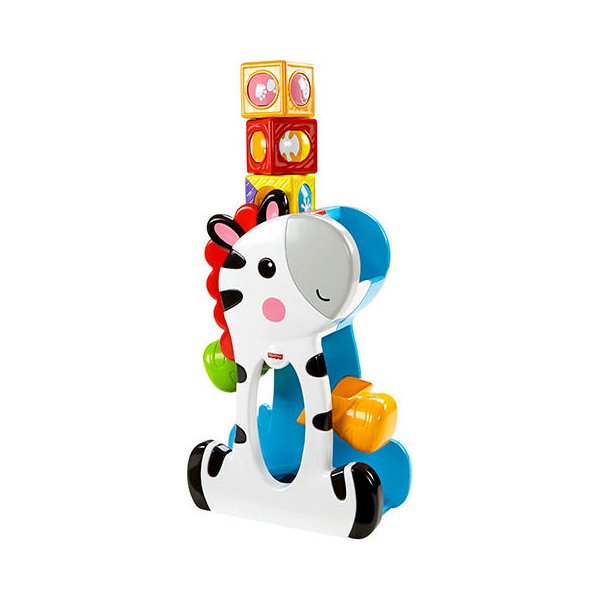 Ruchome klocki - zebra to pełna kolorów i rozrywki zabawa! Maluch może układać wieże z klocków na głowie zebry lub wrzucać je do środka!