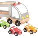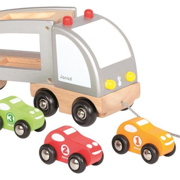 Drewniany samochód laweta do ciągnięcia z serii będzie towarzyszył Twojemu dziecku podczas jego pierwszych kroków. Produkt ma niepowtarzalny design i piękne kolory. Ponadto, jest wykonany bardzo estetycznie i z dbałością o szczegóły: każdy samochodzik posiada inny kolor i oznaczenia.