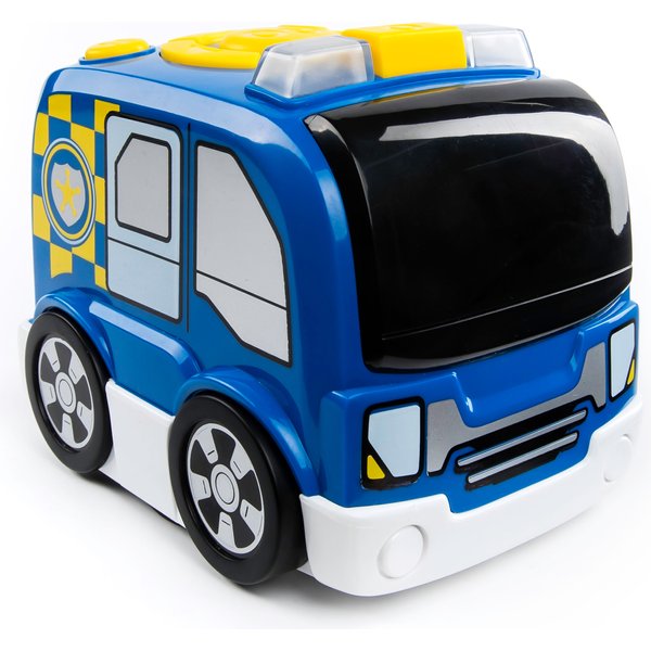 Niech Twoja pociecha samodzielnie zaplanuje policyjną misję! Na dachu samochodu znajdują się przyciski włączające dwa różne tryby działania pojazdu: swobodna jazda lub… misja, którą malec może samodzielnie zaprogramować. Wewnętrzna pamięć pomieści ponad 100 różnych ruchów, a wesołe światełka i realistyczne dźwięki dodają zabawie realizmu. Dziecko ćwiczy umiejętność przewidywania, powoli wdraża się w podstawy programowania oraz ćwiczy wyobraźnię przestrzenną.