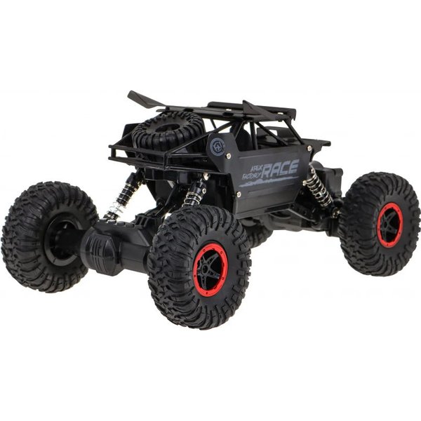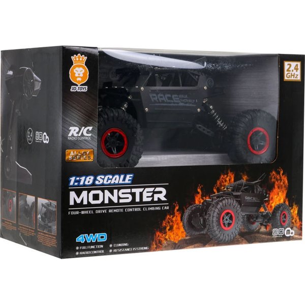 Pięknie wykonany pojazd w skali 1:18 budzi zachwyt i fascynuje swoimi możliwościami. Wyczynowa jazda w ekstremalnych warunkach? Dla modelu Monster Race Crawler to żaden problem - śliskie błoto i kamyki nie zatrzymają samochodu z ogromnymi terenowymi kołami z gumy, wyposażonymi w amortyzację i mocny napęd. Doskonała przyczepność, wytrzymała antykolizyjna konstrukcja, minimalizująca ryzyko wywrotki i łatwość zdalnego sterowania za pomocą pilota to duże zalety tej zabawki.