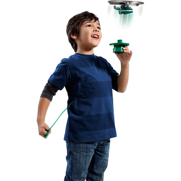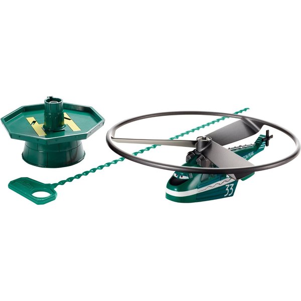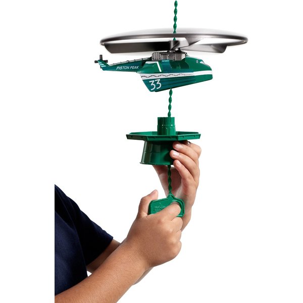 Helikoptery naprawdę latają. W zestawie znajduje się specjalna wyrzutnia, która wypuści helikopter do lotu. Umieść go na wyrzutni. pociągnij pasek napędzający i patrz, jak startuje przed siebie! Im mocniej pociągniesz tym dalej poleci!