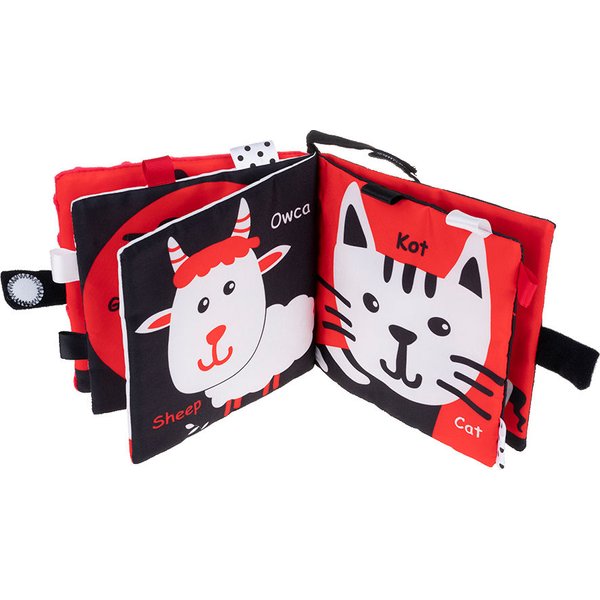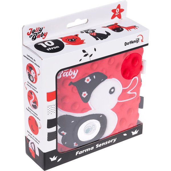 Sensoryczna książeczka od Jollybaby wykonana z miękkich materiałów. Już na wstępie zachwycać malucha będzie szeleszcząca okładka, która pobudzi zmysł słuchu do działania. Kontrastowe barwy zadbają o wzrok, a różnorodne faktury zatroszczą się o dotyk. Dziecko będzie miało do wykorzystania również bezpieczne lusterko oraz wystające metki. Dzięki specjalnemu uchwytowi na rzep możemy ją zawiesić gdzie tylko zechcemy.