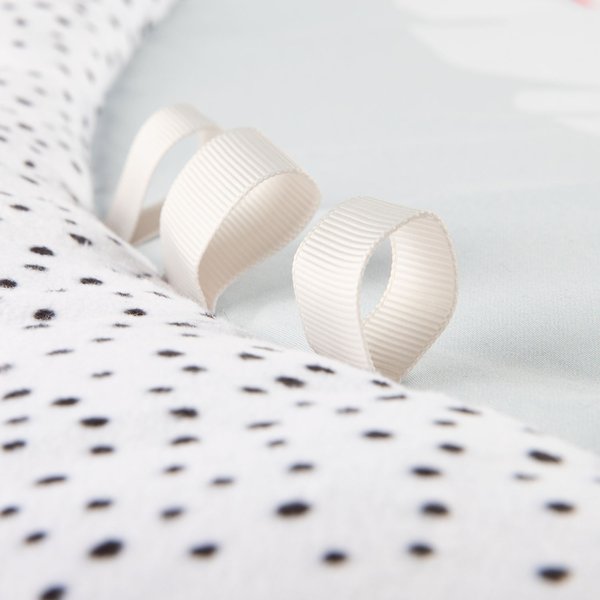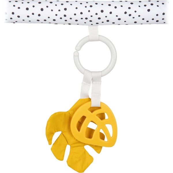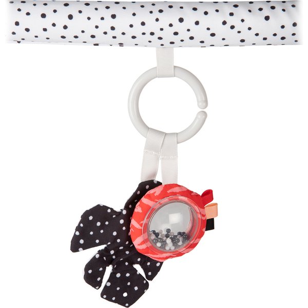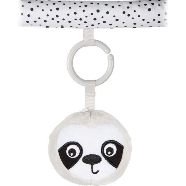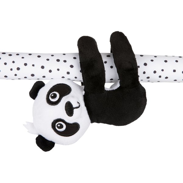 Wykonana z miękkich i bezpiecznych dla maluszka materiałów mata nadaje się do zabawy już od pierwszych tygodni życia dziecka. Zróżnicowane faktury, kontrastowa kolorystyka i zabawki wydające dźwięki pozytywnie wpłyną na rozwój Twojej pociechy, zachęcając do chwytania, wyciągania rączek, podnoszenia się, a nawet raczkowania. Elastyczne pałąki łatwo zdemontować, aby wyprać matę lub używać ją jako izolacji od podłogi. Do dyspozycji dziecka jest tu aż 6 zabawek z możliwością odpięcia w kontrastowej kolorystyce, wpływającej na prawidłowe widzenie. Urocze główki zwierzątek z sympatycznymi uśmiechami rozweselą każdego maluszka. Dźwiękowe elementy maty to 2 szeleszczące listki, panda z piszczkiem i łapkami zapinanymi na rzep oraz grzechotka. W czasie trudnych chwil ząbkowania ulgę przyniesie gryzak, a duże, odpinane lusterko wzbudzi zainteresowanie ciekawskiego niemowlaka.