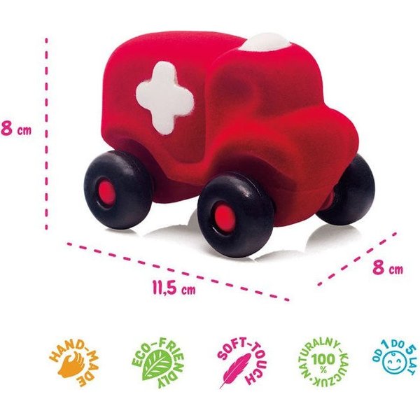 Mały, uroczy pojazd od Rubbabu jest zdecydowanie jedyny w swoim rodzaju! Tej wyjątkowości dodaje mu fakt, że jest niezwykle miękki i przyjemny w dotyku. Jest dzięki temu bardzo lekki, a dzięki małym wymiarom maluch z łatwością chwyci go do rączek. Jego budowa sprawia, że można go bezpiecznie rzucać i ściskać. Posiada piękne, jaskrawe barwy obok, których nie da się przejść obojętnie! Wykonany został z naturalnego kauczuku, który jest przyjazny dla środowiska.