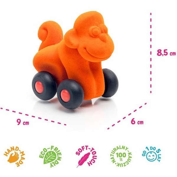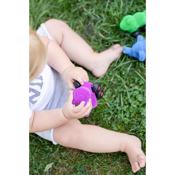 Mały, uroczy pojazd od Rubbabu jest zdecydowanie jedyny w swoim rodzaju! Tej wyjątkowości dodaje mu fakt, że jest niezwykle miękki i przyjemny w dotyku. Jest dzięki temu bardzo lekki, a dzięki małym wymiarom maluch z łatwością chwyci go do rączek. Jego budowa sprawia, że można go bezpiecznie rzucać i ściskać. Posiada piękne, jaskrawe barwy obok, których nie da się przejść obojętnie! Wykonany został z naturalnego kauczuku, który jest przyjazny dla środowiska.