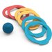 - Zestaw do gry w ringo w którego skład wchodzi 6 kółek w trzech kolorach (turkusowy, różowy, żółty) oraz piłeczka.