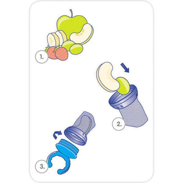 Siateczka do podawania pokarmów firmy Canpol Babies służy do bezpiecznego podawania nie tylko świeżych owoców, ale także warzyw, sera czy ciastek.